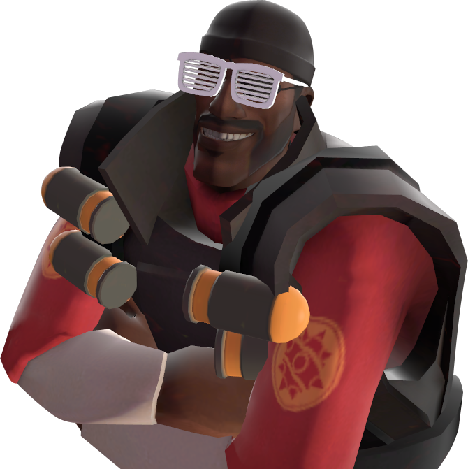 (This is a picture of the Demoman class from Team Fortress 2 wearing the Dangeresque, Too? Shades.)