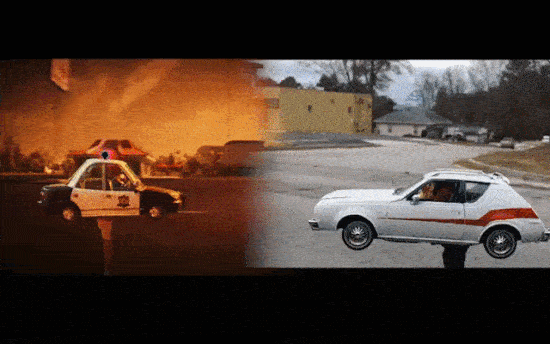 A scene from Dangeresque Puppet Squad: The Hot Jones Hijack being compared to a scene from The Mitchells vs. the Machines (posted to @StrongBadActual)
