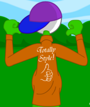 Coach Z is the "coach" of the residents of Free Country, USA, though it is unclear exactly which sports he coaches. He has a strong Upper Midwestern accent which sometimes gets him into trouble. He almost never says anything negative to anyone, and he often offers more encouragement than is needed. When giving advice, he tends to start with the phrase "You can't just rush into the score zone", which by now has lost its meaning. He wears a blue and purple baseball cap and is famous for the large gold Z emblem around his waist, but nobody knows for sure whether his bright green color is his skin or a body suit. However, baby Coach Z seems to be wearing footy pajamas in the email highschool, and on more than one occasion, Coach Z has mentioned his pants. In shapeshifter, Coach Z referred to his outfit as his "sweaty sweat-sweats", which was seen to have at least one pocket. His head is a white sphere with light gray circles for eyes. Coach Z lacks a nose or mouth. He is also one of the few main characters with clearly defined hands and feet; Coach Z's arms are long compared to his body, and very short legs leading to wide feet.