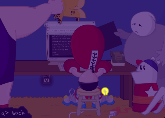 Strong Bad finishes his email without electricity, with the help of Strong Mad, Strong Sad, The Cheat, and Homestar Runner (from extra plug)