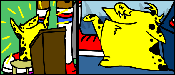 Two instances of The Cheat smiling in Powered by The Cheat form. (from bedtime story)